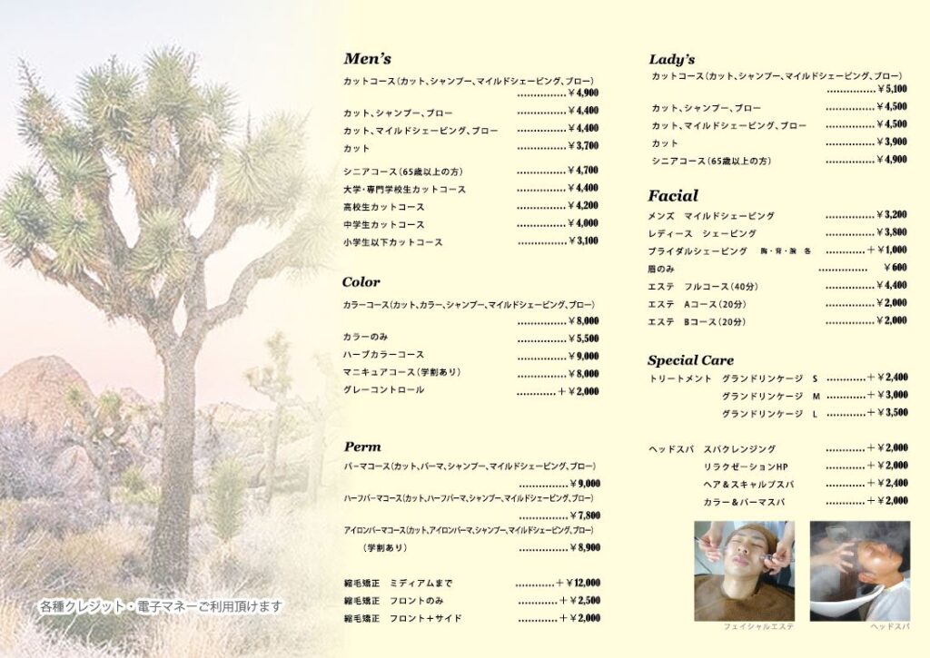 店頭でお配りしているパンフレット。令和6年7月現在の料金表が掲載されています。